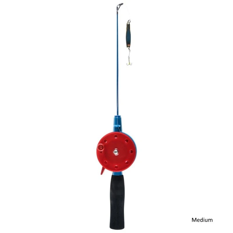Alles ist bereit und vorbereitet für den Angelausflug. Die Schnur ist vorgespult und ein hochwertiger Vertikal-Jig mit einem Eisangelhaken ist befestigt. Einfach Wasser (und Made) hinzufügen. Erhältlich in kleinen, mittleren & großen Größen.